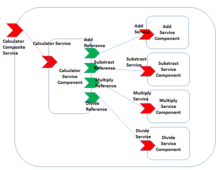 Multiply Service component performs the multiplication operation through its MultiplyService interface. Divide Service component divides the first double variable by the second one.