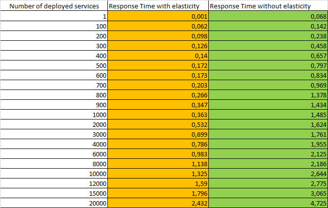 The case study has been deployed in a Cloud environment using our deployment framework. In table 5, we present the response time of this application with