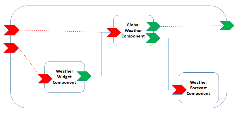 The Calculator composite is composed of five components. Calculator Service Component receives